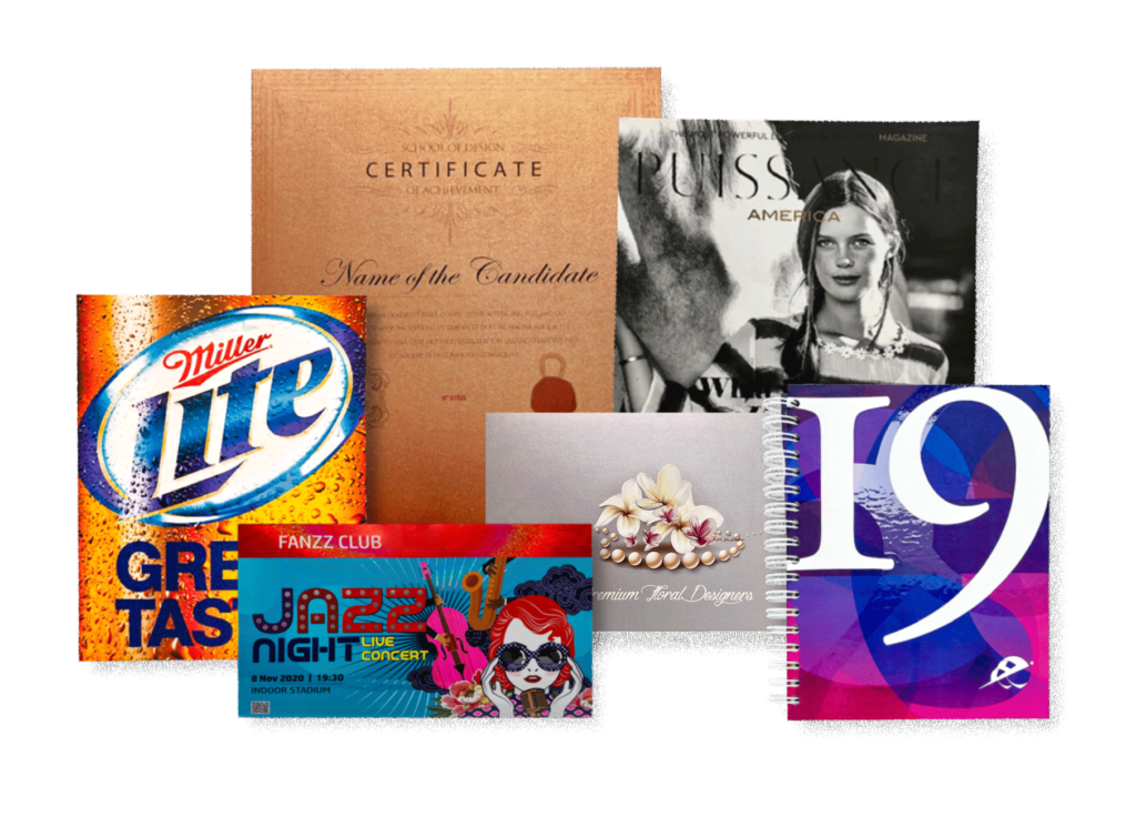 Barnices a registro texturizados, laminados texturizados, Hot Foil de colores, suajes especiales, encuadernados pegados y perforados, impresión digital para datos variables, empaques especiales y más.